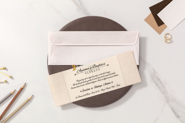 Gelin Damat Davetiye markasının titizlikle hazırladığı bu özel tasarım, düğün, nişan ve tüm özel etkinliklerinizde benzersiz bir stil sunar.