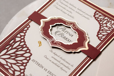 Gelince Haber VerGelin Damat Davetiye markasının zarif tasarım anlayışıyla üretilen Bordo Renk Altlık ve Pencereli Kemerli Desenli Davetiye, şıklığı ve zarafeti bir araya getiriyor. Düğün davetiyesi fiyatlarına KDV dahildir. Bordo renk altlık ve pencereli kemerli tasarımı, davetiyenize sofistike bir hava katarken, zarif desenler ile göz alıcı bir şıklık sunar. Yüksek kaliteli kağıt kullanımı ve detaylı işçilik, düğün, nişan ve diğer özel organizasyonlar için mükemmel bir seçenek oluşturur.