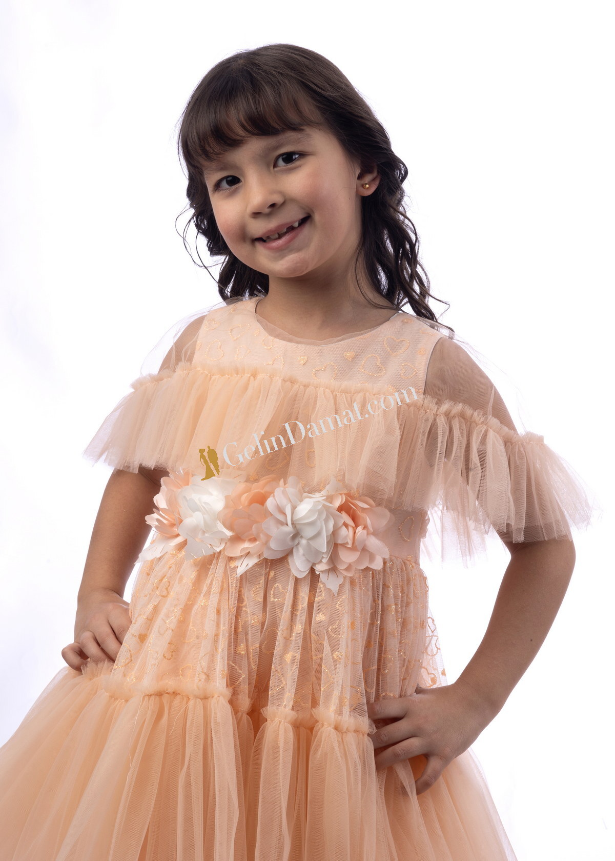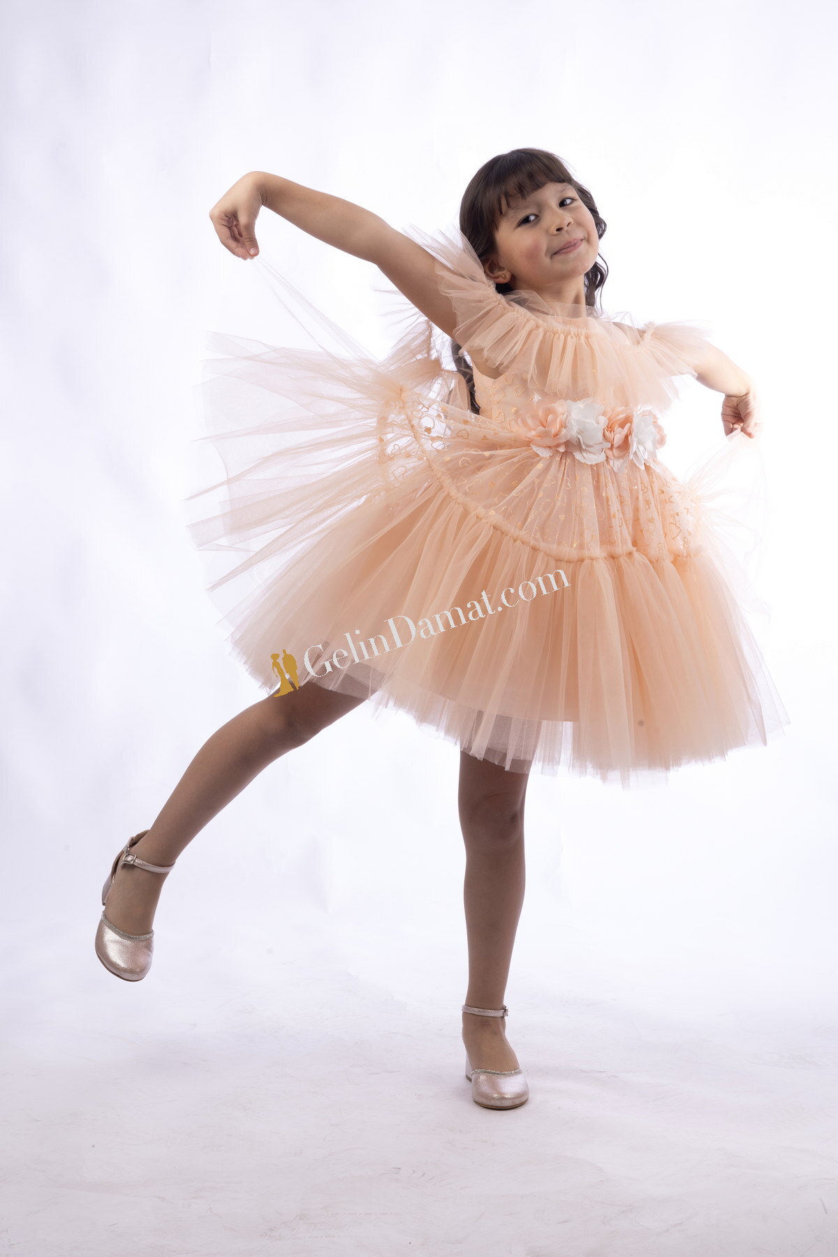 Turuncu çiçek tül detaylı çocuk abiye elbise, 0-12 yaş arası çocuklar için zarif ve şık bir seçenektir. Çiçek tül detayları, elbiseye romantik bir hava katarak özel günlerde ve davetlerde dikkatleri üzerine çeker. Hem konforlu hem de şık olan bu kız çocuk abiye modeli, KDV dahil fiyatlarla her bütçeye uygun bir alternatif sunar. Yüksek kaliteli kumaşı ve zarif tasarımıyla, en özel anlarda rahatça giyilebilecek mükemmel bir modeldir.