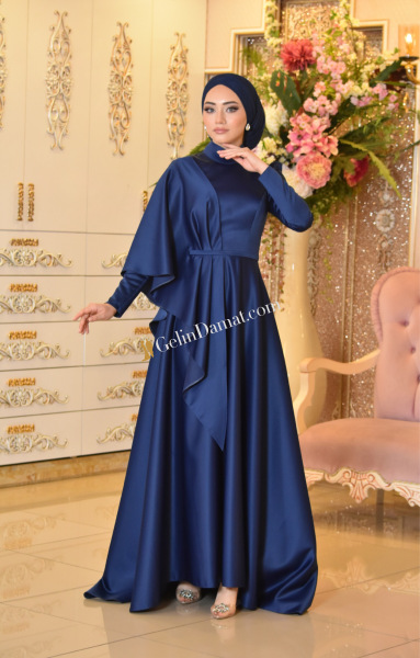 LACİVERT renginde saten kumaş tek omuz pelerin detaylı beli ince kemerli bilek boy oval kuyruk detaylı tasarım abiyelerimiz Mahidevran güvencesiyle özel günlerinizin favorisi olacaktır