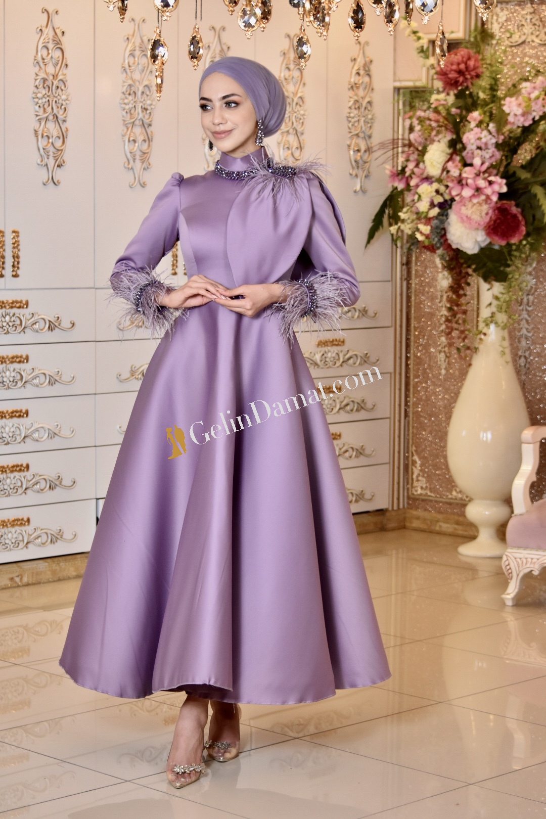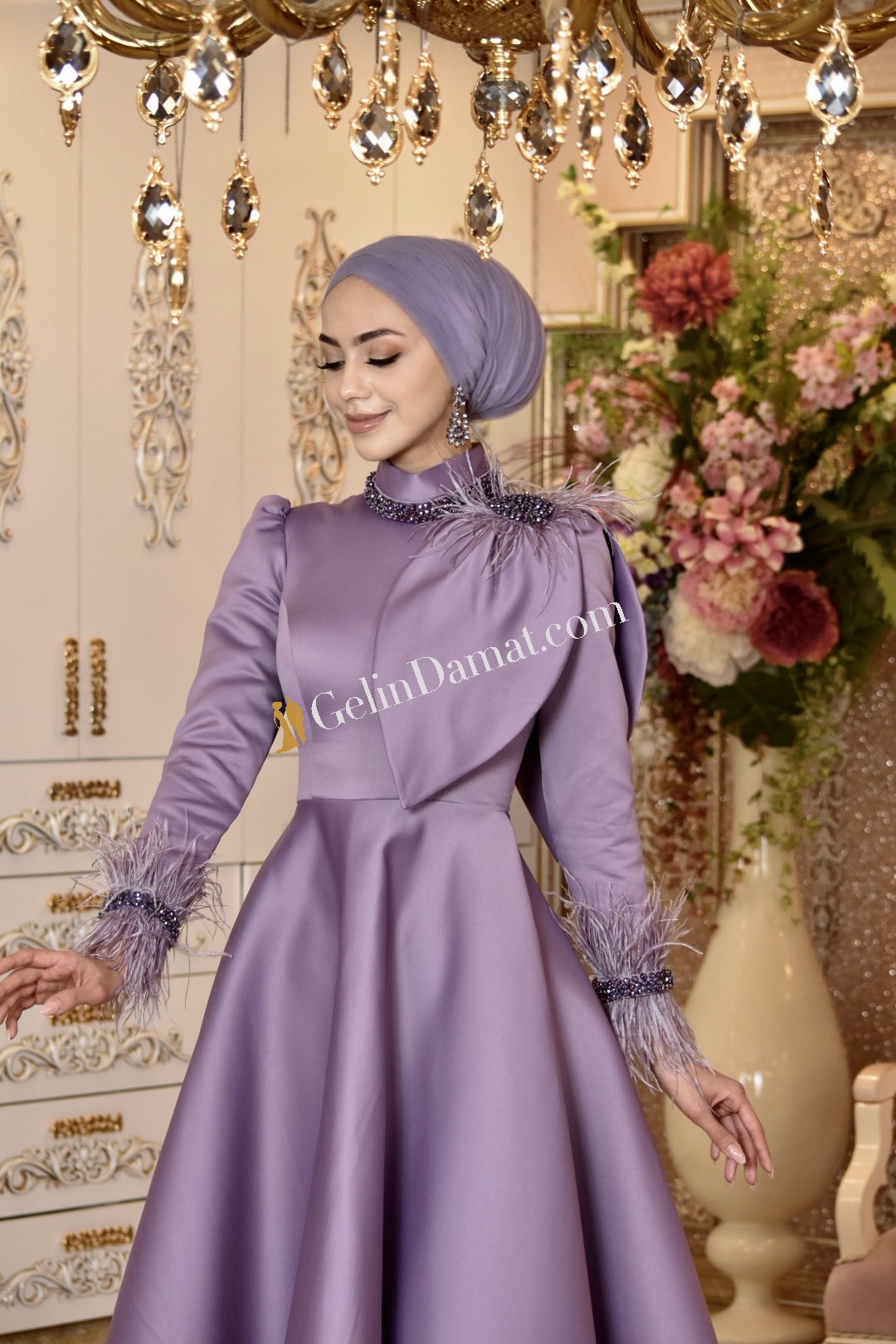 LİLA RENGİ SOL MUZUNDA FİYONKU OLAN KOL UÇLARI OTRİŞLİ VE KRİSTAL TAŞ İŞLEMELİ ETEK ALTI GRENLİ KLOŞ KESİM MUHTEŞEM BİR ÖZEL GÜN KOSTÜMÜDÜR.MAHİDEVRAN GÜVENCESİYLE.