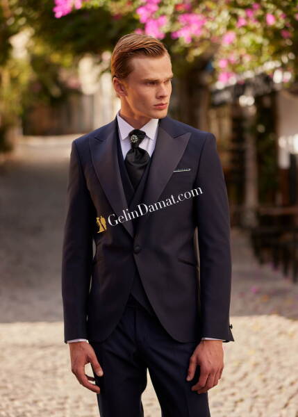 Özel Tasarımlı Ceket Detaylı Lacivert Damatlık