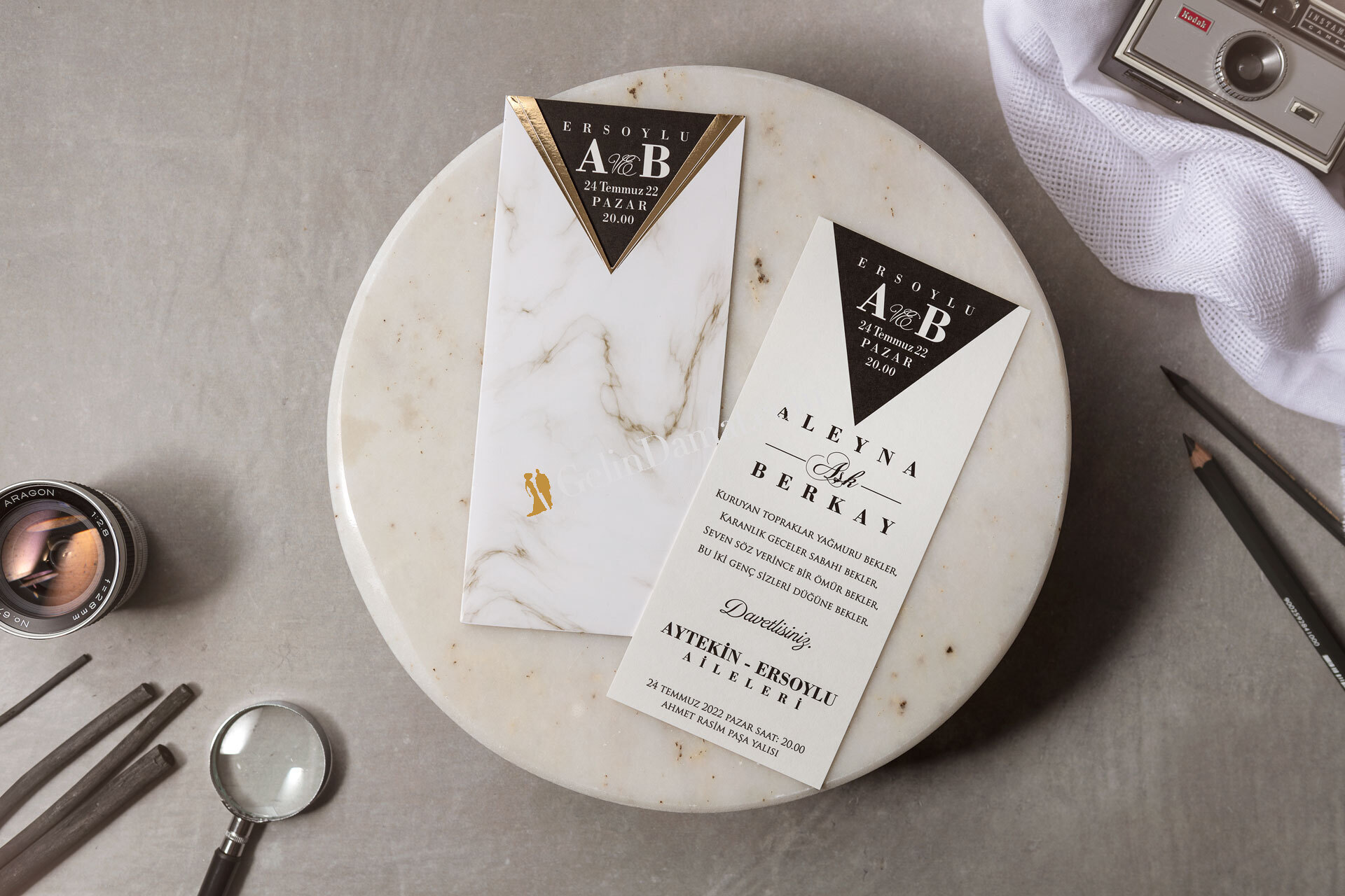 Gelince Haber VerMermer Desen Siyah Zarflı Davetiye, modern ve sofistike tasarımıyla dikkat çeker. Mermer deseninin zarif bir şekilde işlendiği bu davetiye, şıklığı ve zarafeti bir araya getiriyor. Siyah zarfla tamamlanan tasarım, özel günlerinizi unutulmaz kılacak zarif bir başlangıç sunar. Gelin Damat Davetiye markasının özenle hazırladığı bu davetiye, düğün, nişan ve diğer özel organizasyonlar için ideal bir tercihtir.