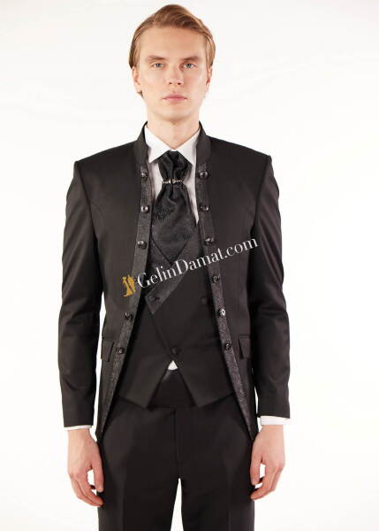 Modern Ceket Detaylı Siyah Damatlık Takımı