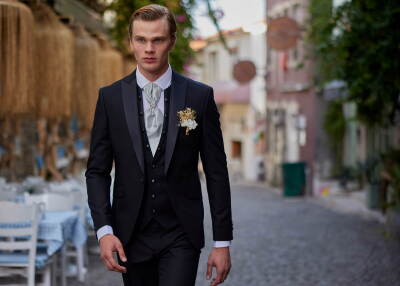 Özel Tasarım Ceket Detaylı Siyah Damatlık Takımı