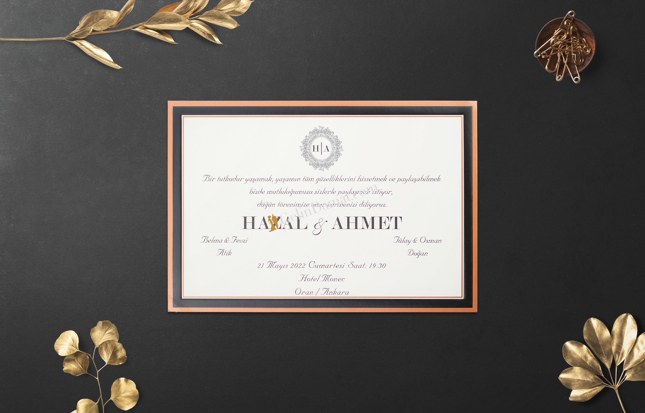 *  Özel kalın sıvamalı düğün davetiyesi.