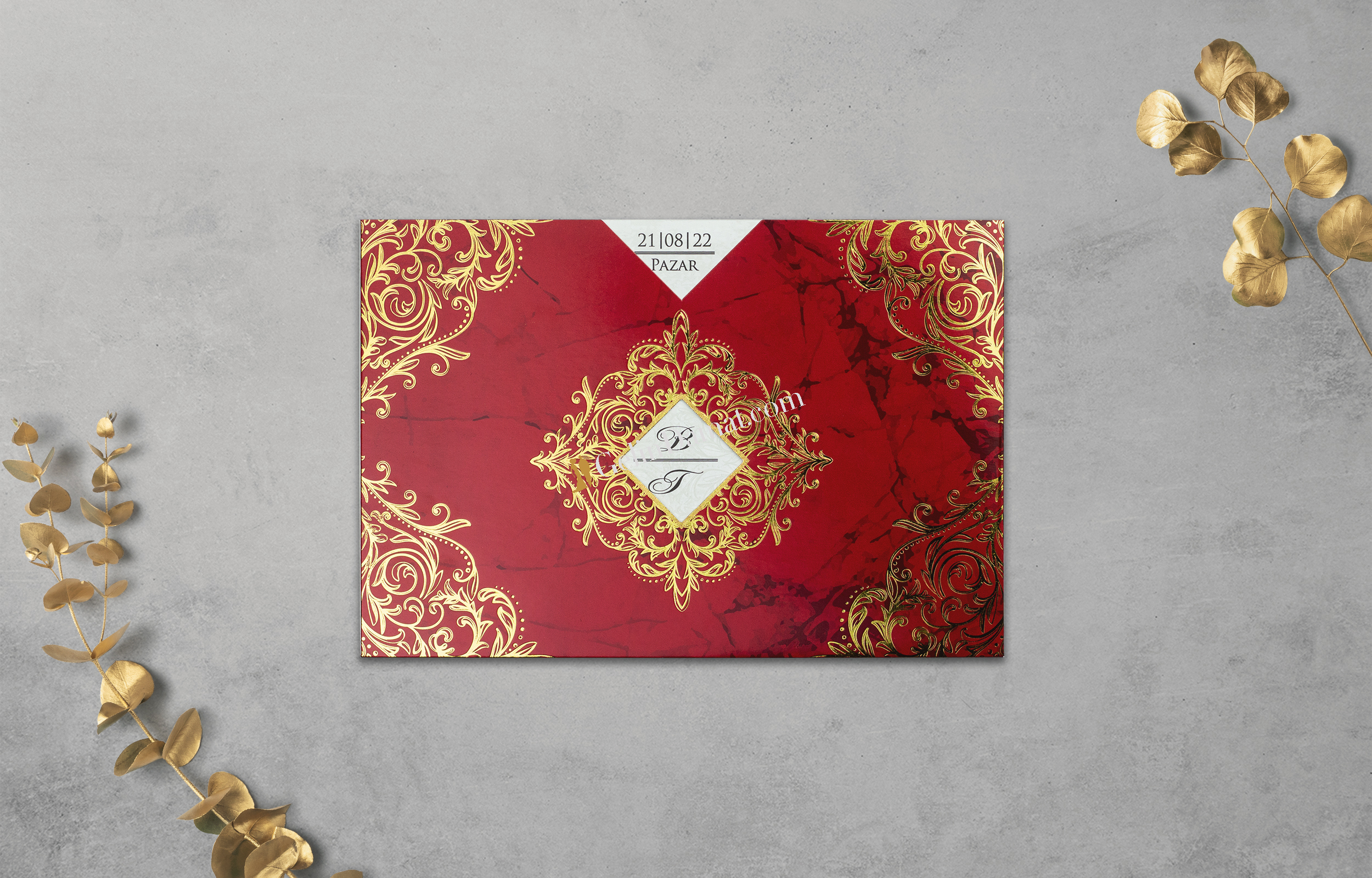 Özel Kırmızı Desenli Davetiye - GD1234C
