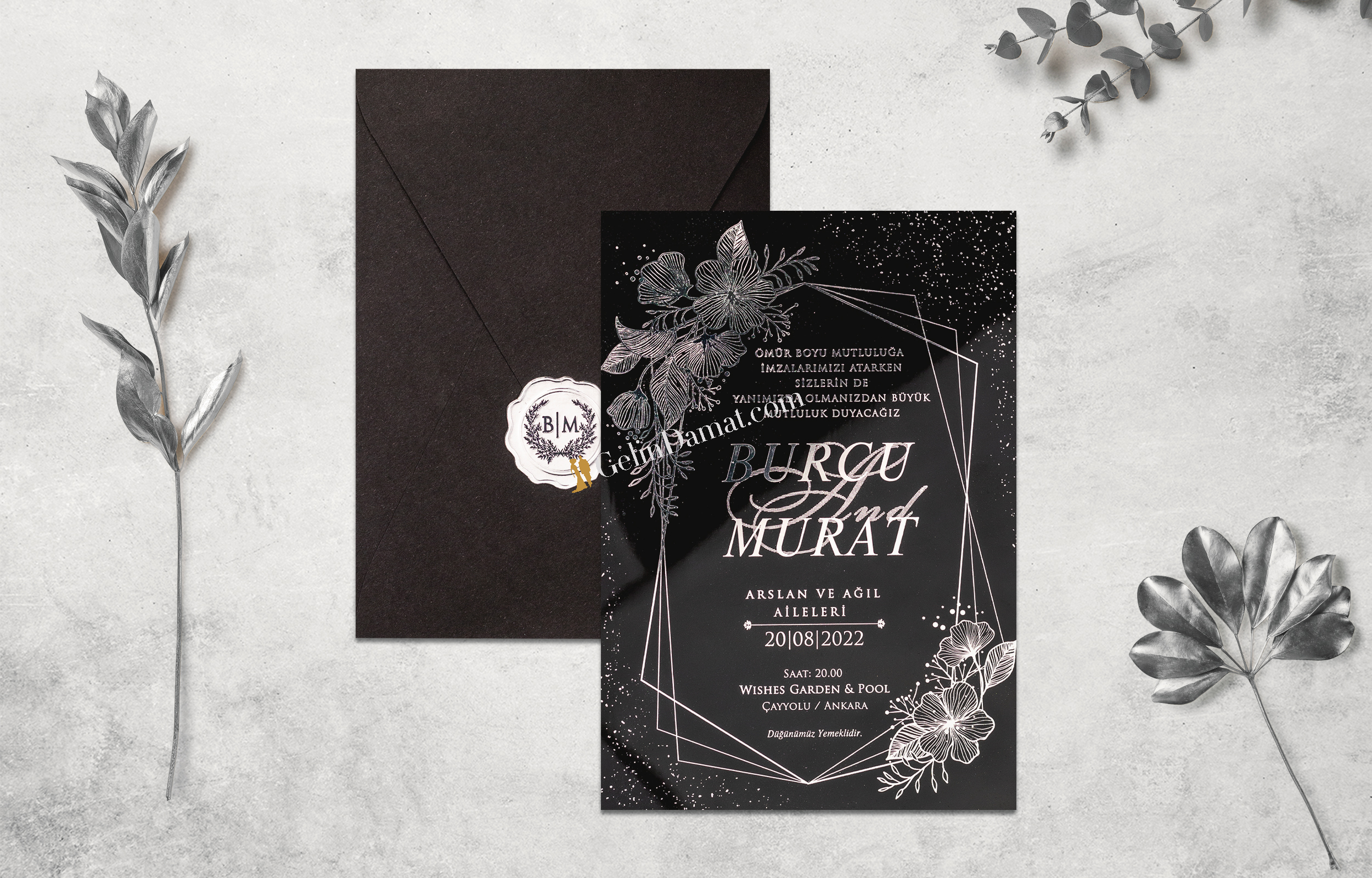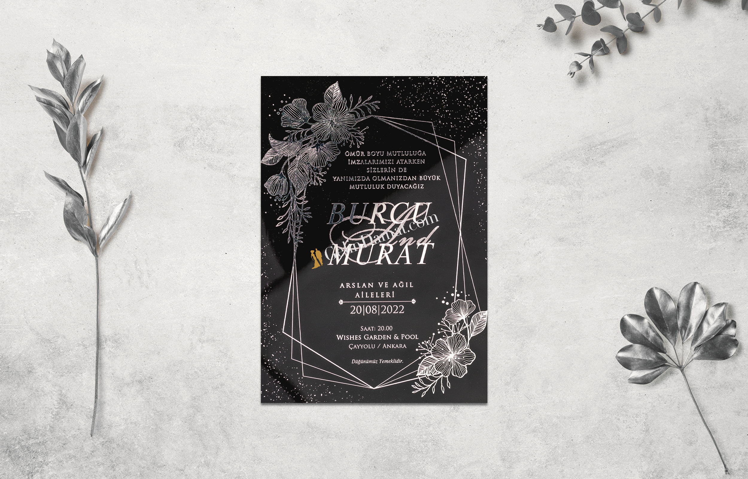 * Özel kalın sıvamalı düğün davetiyesi.