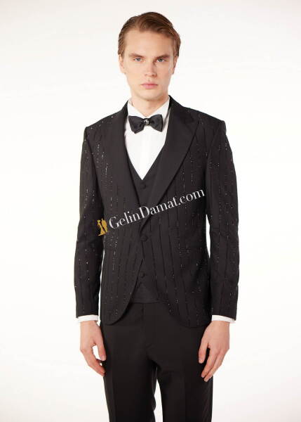Şık Ceket Tasarımlı Siyah Smokin Takım