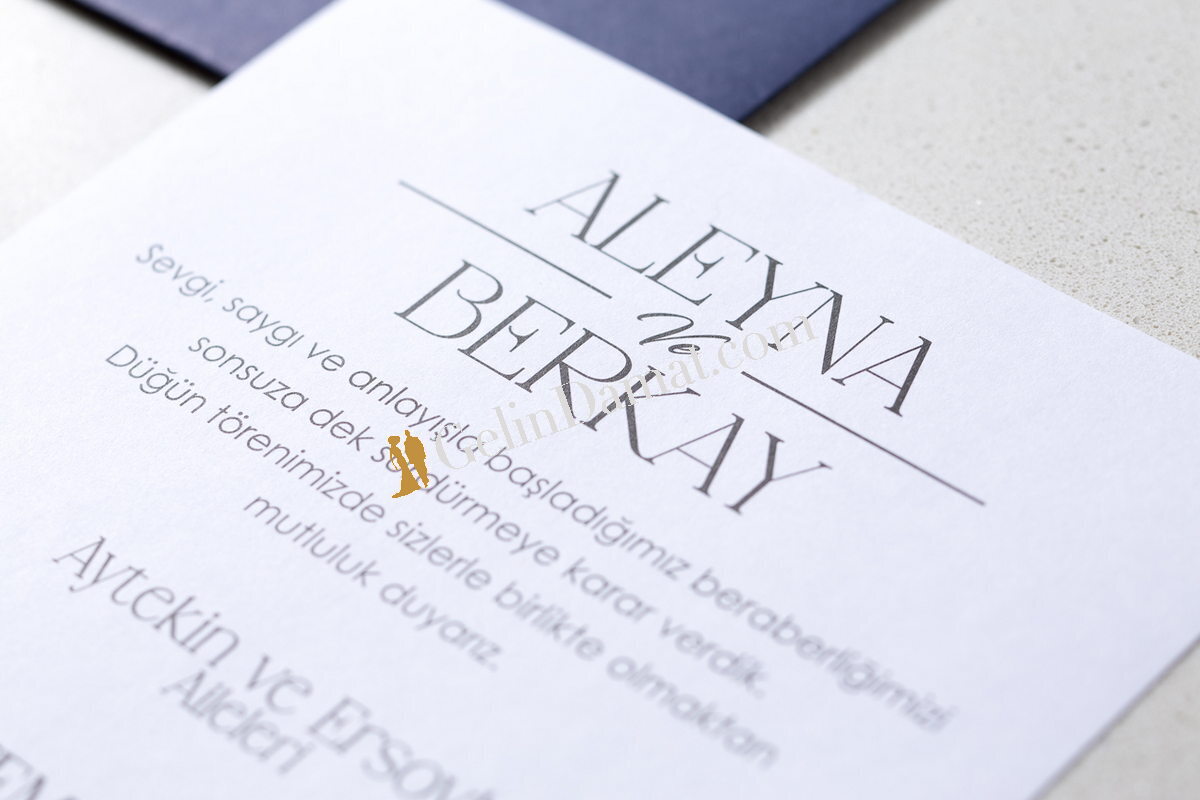 Notify me when its in stockGelin Damat Davetiye markasının özenle tasarladığı bu ürün, düğün, nişan ve diğer özel etkinliklerinizde misafirlerinize etkileyici bir davet sunar. Şık tasarımlı lacivert davetiye, zarif lacivert tonları ve şık detaylarla modern bir görünüm sunar. Lacivertin asaleti, davetiyenize sofistike bir hava katarak, etkinliğinizin prestijini mükemmel bir şekilde yansıtır. Kaliteli malzeme kullanımı ve ince işçiliğiyle tasarlanan bu davetiye, misafirlerinize unutulmaz bir davet izlenimi bırakacaktır.