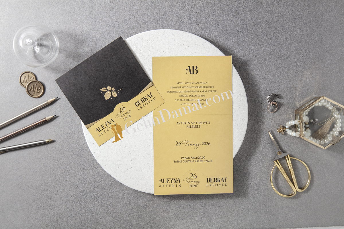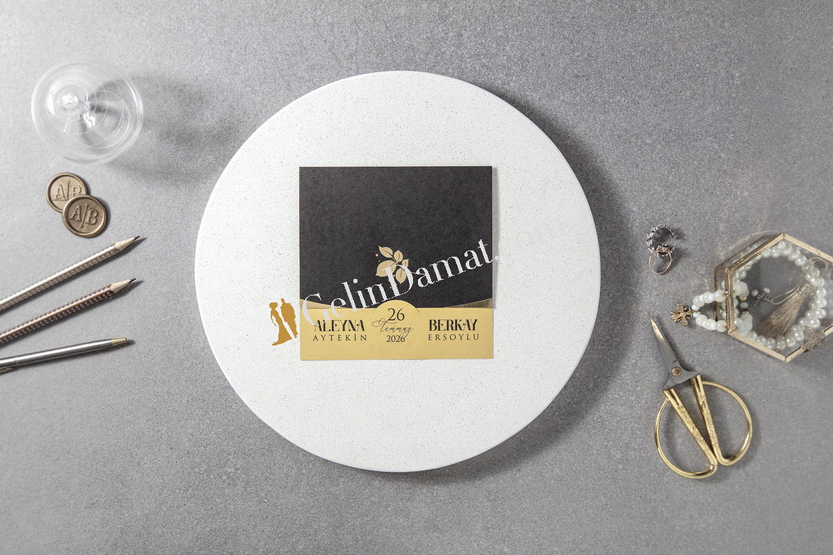 Notify me when its in stockSiyahın zarif ve lüks havasıyla tasarlanmış bu davetiye, davetlerinize sofistike bir dokunuş katıyor. Modern çizgiler ve kaliteli malzeme ile hazırlanan bu model, zarif detaylarıyla öne çıkıyor ve davetinizin prestijini yansıtıyor. Gelin Damat Davetiye güvencesiyle üretilen bu lüks davetiye, özel anlarınızı unutulmaz kılacak şıklıkta.